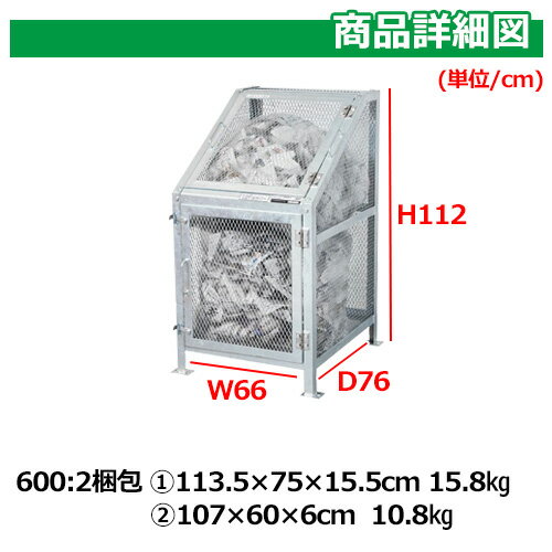 ゴミ箱 ダストボックス メッシュゴミ収集庫 KDB-600N グリーンライフ ゴミ収集庫 ごみ集積 ゴミ収集所用 金属製ゴミ収集庫 ゴミストッカー 設置 屋外 大容量 町内会 自治会 猫 カラス