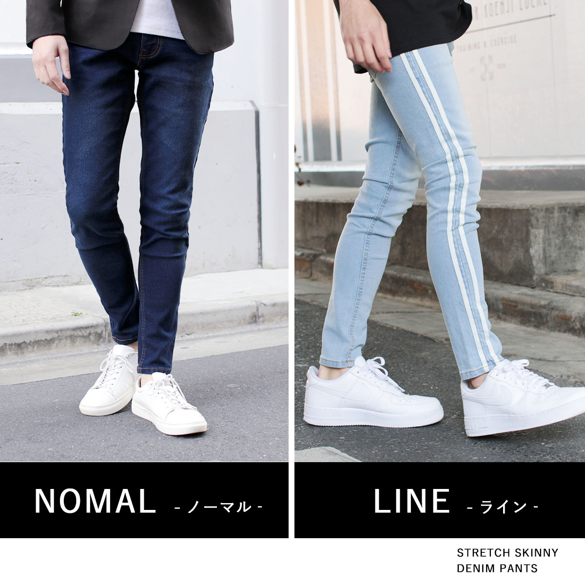 より美脚ラインが際立つシンプルなデザインの「ノーマル」タイプと、サイドラインデザインでさり気ないこなれ感を演出する「ライン」タイプをご用意しました。