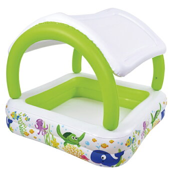 マジックテープ式着脱可能な日よけ屋根付きプールです。